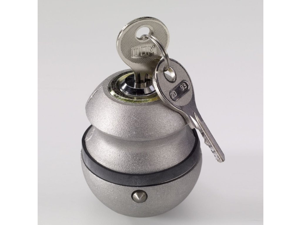 Ochrana proti odcudzeniu príves. Univerzálne. Zámok spojky je zasunutý do závesu prívesu. Je upevnená v spojovacej hlave pomocou priloženého imbusového kľúča. Teraz môžete uzatvoriť spojku so zabudovaným zámkom valca.